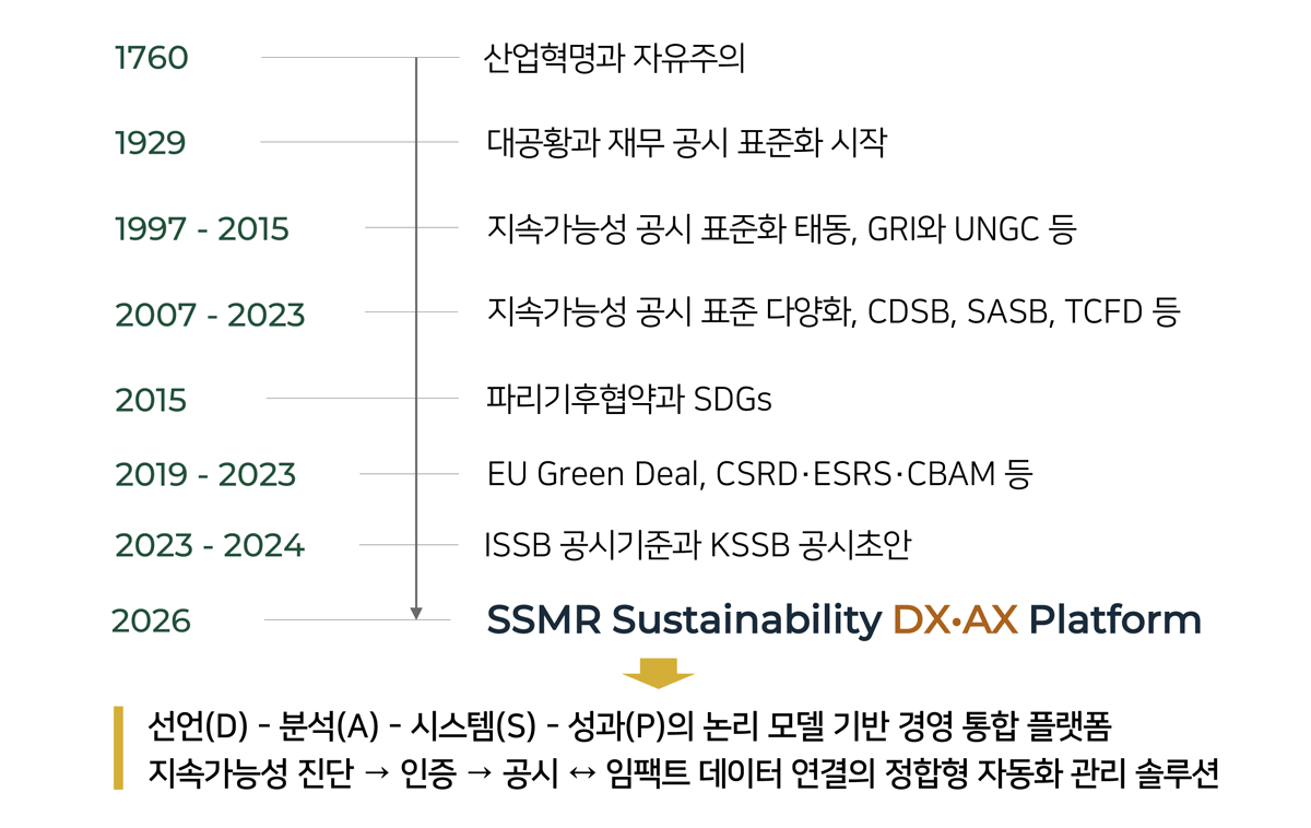 (주)서울지속가능경영연구원 SSMR 산업혁명부터 D-A-S-P 로직까지 지속가능경영 연대기 및 DX·AX 통합 솔루션 탄생 배경